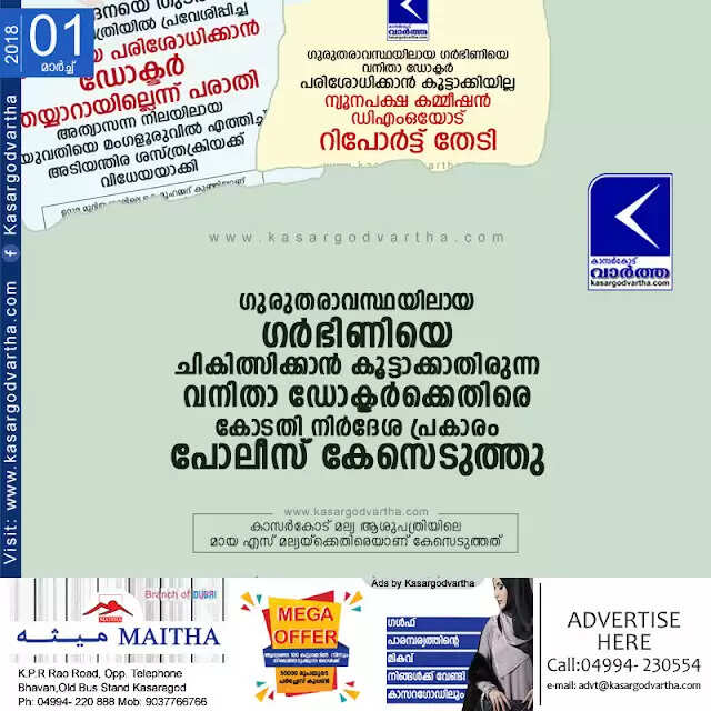 Keywords : Kasaragod, Police, Complaint, Case, Crime, Court, Doctor, News, Treatment, Hospital, Maya S Malya.