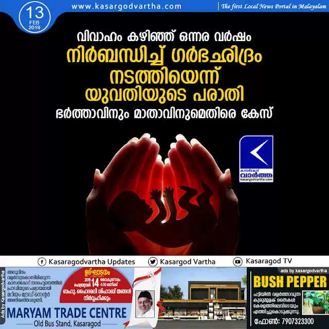 വിവാഹം കഴിഞ്ഞ് ഒന്നര വര്‍ഷം; നിര്‍ബന്ധിച്ച് ഗര്‍ഭഛിദ്രം നടത്തിയെന്ന് യുവതിയുടെ പരാതി, ഭര്‍ത്താവിനും മാതാവിനുമെതിരെ കേസ്