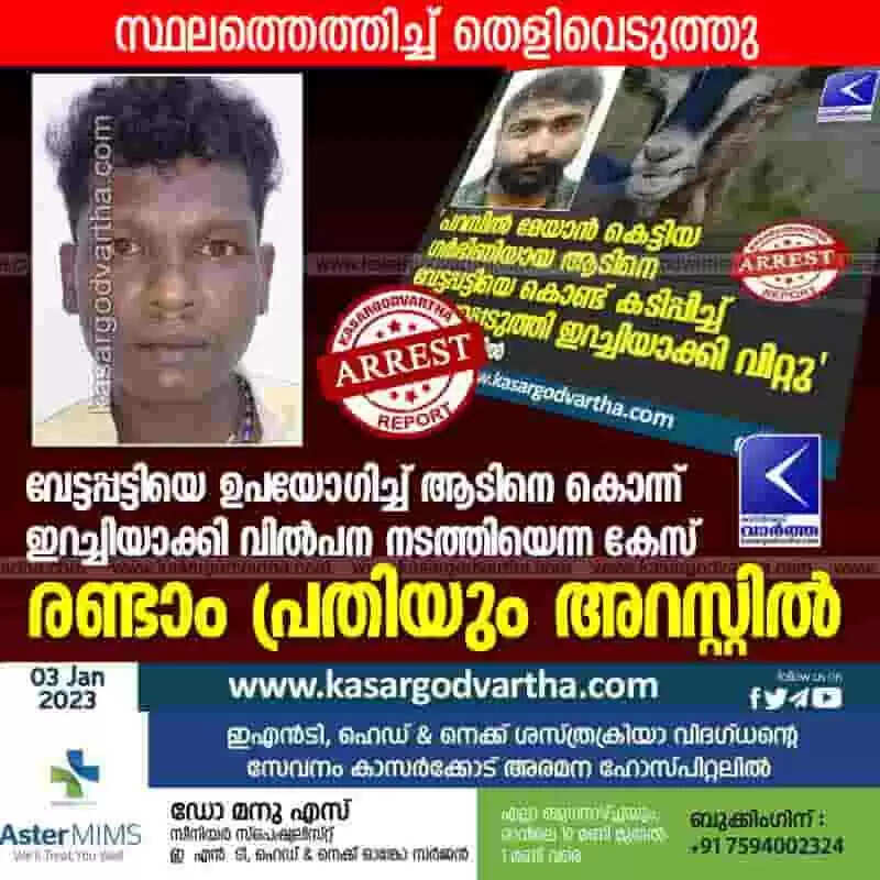 Arrested | വേട്ടപ്പട്ടിയെ ഉപയോഗിച്ച് ആടിനെ കൊന്ന് ഇറച്ചിയാക്കി വില്‍പന നടത്തിയെന്ന കേസ്: രണ്ടാം പ്രതിയും അറസ്റ്റില്‍