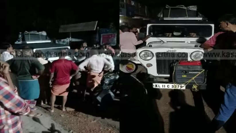 ഇതിനിടയില് നെല്ലിയടുക്കത്തുള്ള ചിലരെ മൊബൈല് ഫോണില് വിളിച്ച് ജീപ് തടയാന് ആവശ്യപ്പെട്ടു. തുടര്ന്ന് ജീപ് തടയുകയും ചോദ്യം ചെയ്തപ്പോള് ഒരാള് ഇറങ്ങി ഓടിയെന്നും സമീപവാസികള് പറയുന്നു. രണ്ടുപേരെ സ്ഥലത്ത് പിടിച്ചുവെച്ച് നീലേശ്വരം പൊലീസിനെ അറിയിച്ച് കൈമാറുകയായിരുന്നു.