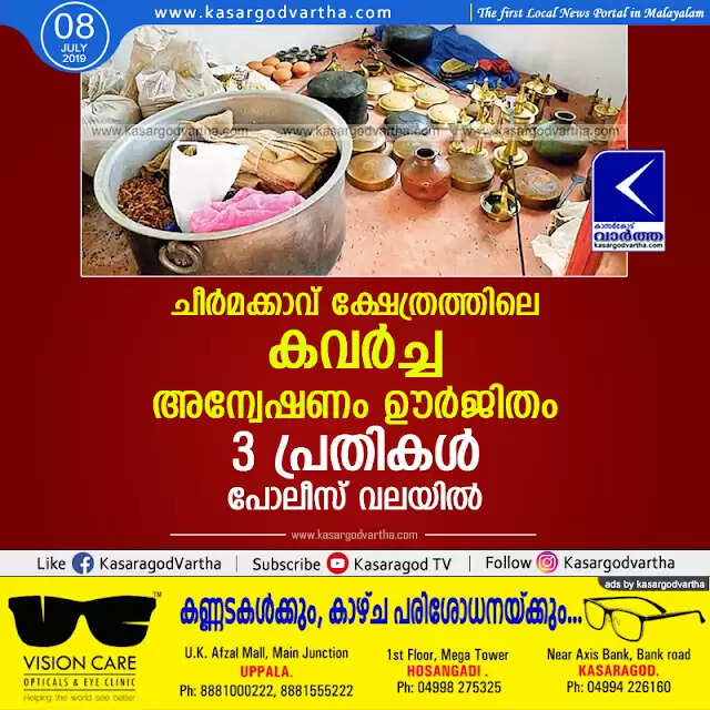 Keywords:  Kasaragod, Kerala, news, Neeleswaram, Top-Headlines, Robbery, Temple, Crime, Police, Investigation, Cheermakkavu Temple robbery; 3 under police net