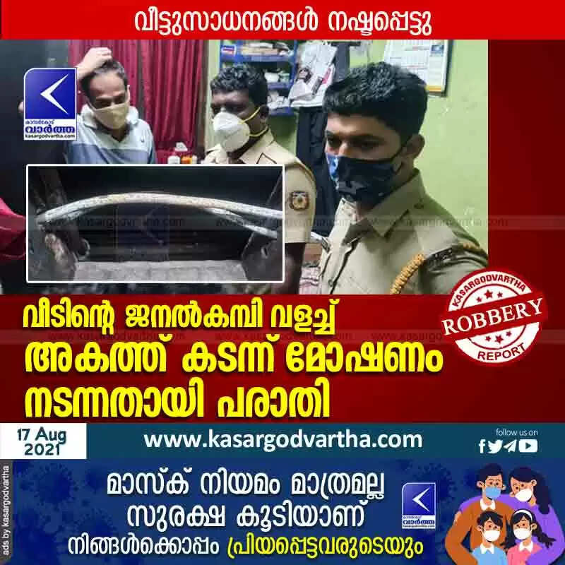 വീടിന്റെ ജനൽ കമ്പി വളച്ച് അകത്ത് കടന്ന് മോഷണം നടന്നതായി പരാതി; വീട്ടുസാധനങ്ങൾ നഷ്ടപ്പെട്ടു