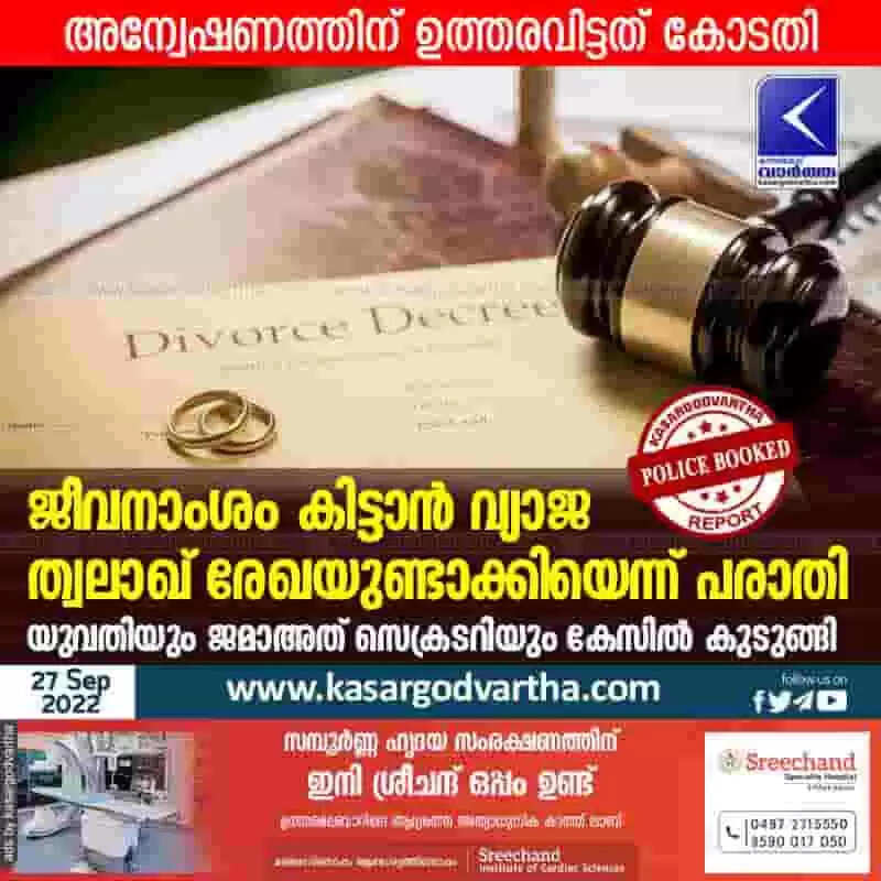 Keywords: Latest-News, Kerala, Kasaragod, Top-Headlines, Court-Order, Court, Marriage, Wedding, Jamaath-Committee, Complaint, Crime, Investigation, Talaq, Complaint that fake talaq document made to get alimony.