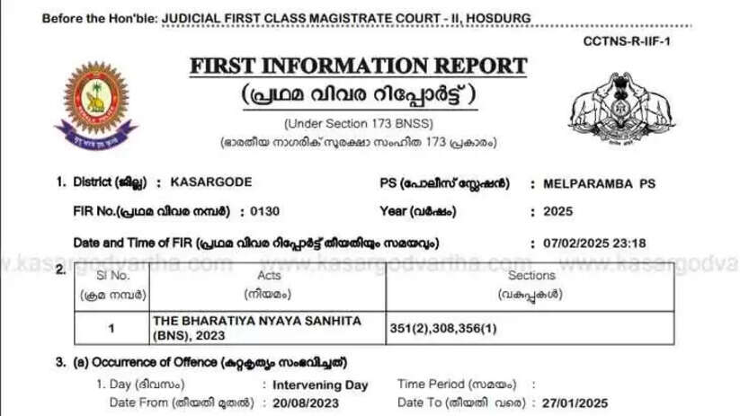 ബിഎൻഎസ് നിയമത്തിലെ 351(2), 308, 356(1) വകുപ്പുകളാണ് പ്രതികൾക്കെതിരെ ചുമത്തിയിരിക്കുന്നത്. മേൽപറമ്പ് ഇൻസ്പെക്ടർ എ സന്തോഷ് കുമാറിൻ്റെ നേതൃത്വത്തിലാണ് കേസ് അന്വേഷണം പുരോഗമിക്കുന്നത്.