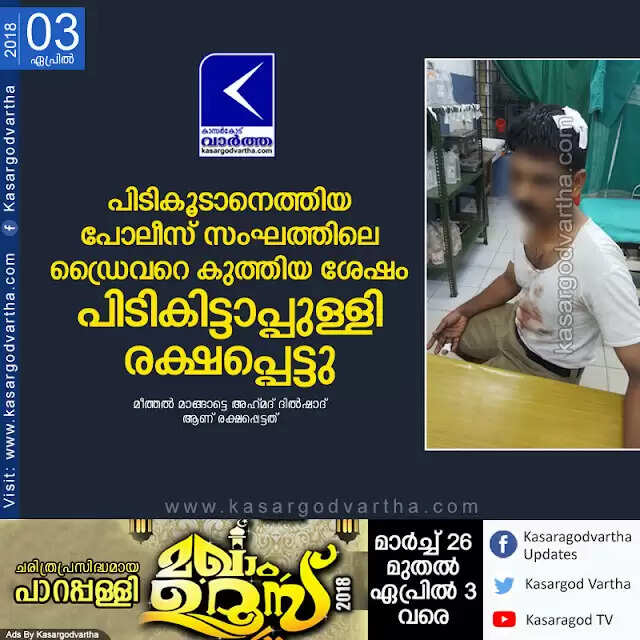 പിടികൂടാനെത്തിയ പോലീസ് സംഘത്തിലെ ഡ്രൈവറെ കുത്തിയ ശേഷം പിടികിട്ടാപ്പുള്ളി രക്ഷപ്പെട്ടു