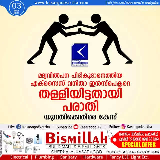 Keywords: Kasaragod, Kerala, news, Bedakam, Top-Headlines, Crime, case, Youth, Liquor, Excise lady officer attacked by Woman; Case registered
