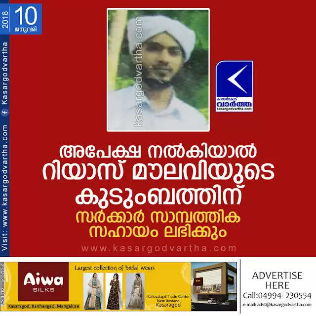 Keywords: Kasaragod, Kerala, News, Murder-case, Crime, Complaint, Get Government financial aid for Riyas Moulavi's family if requested.