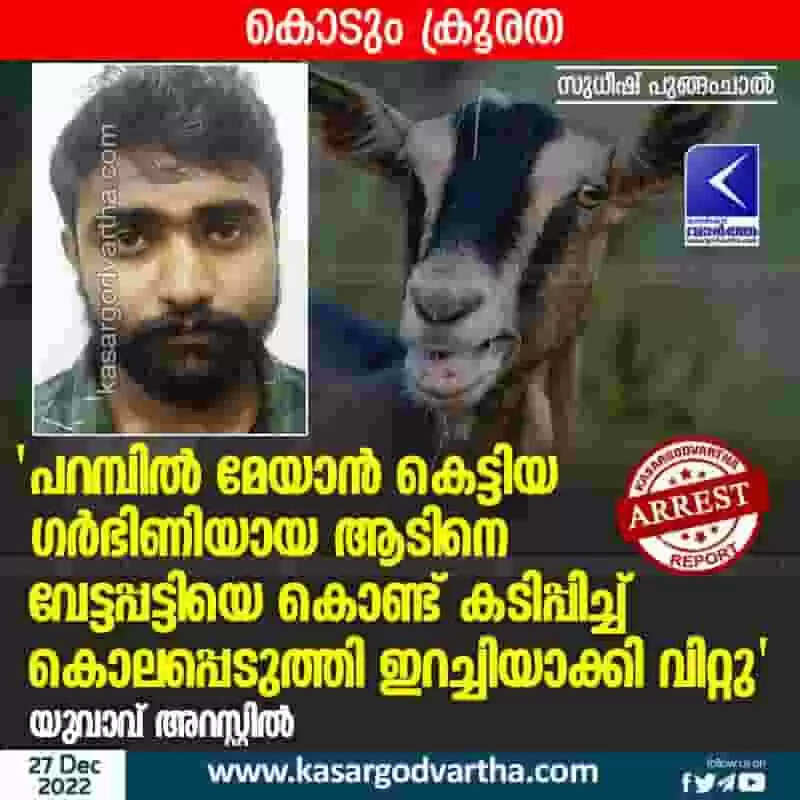 Arrested | 'പറമ്പില് മേയാന് കെട്ടിയ ഗര്ഭിണിയായ ആടിനെ വേട്ടപ്പട്ടിയെ കൊണ്ട് കടിപ്പിച്ച് കൊലപ്പെടുത്തി ഇറച്ചിയാക്കി വിറ്റു'; യുവാവ് അറസ്റ്റില്