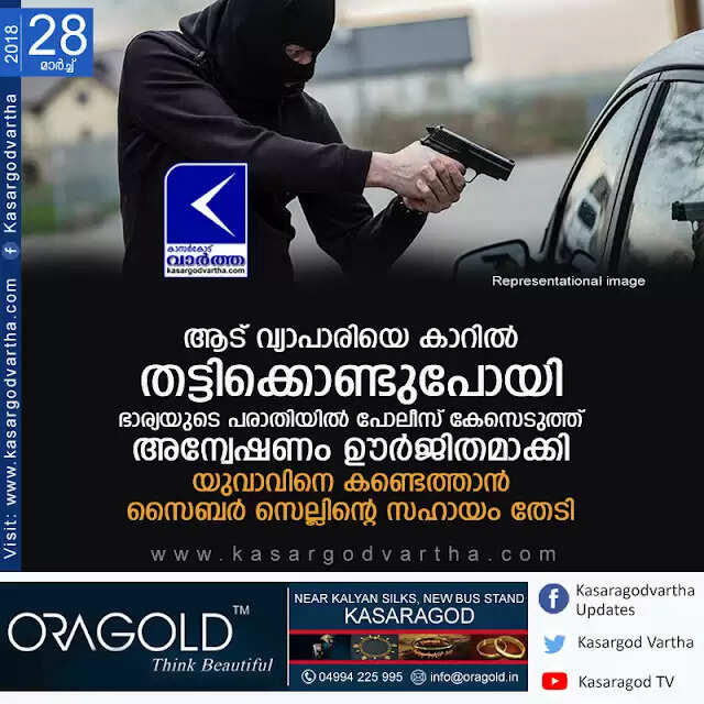 ആട് വ്യാപാരിയെ കാറില് തട്ടിക്കൊണ്ടുപോയി; ഭാര്യയുടെ പരാതിയില് പോലീസ് കേസെടുത്ത് അന്വേഷണം ഊര്ജിതമാക്കി, യുവാവിനെ കണ്ടെത്താന് സൈബര് സെല്ലിന്റെ സഹായം തേടി