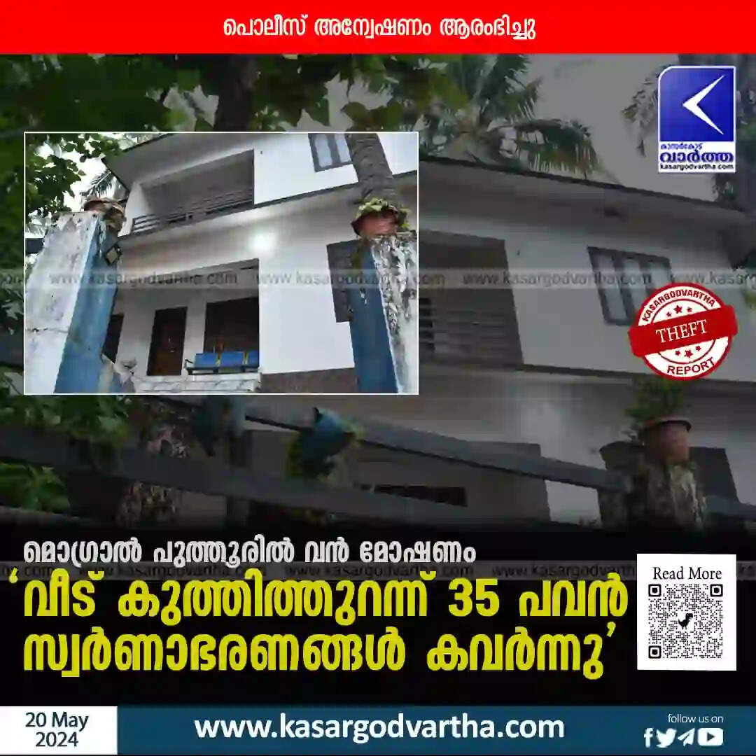 Theft | മൊഗ്രാൽ പുത്തൂരിൽ വൻ മോഷണം; 'വീട് കുത്തിത്തുറന്ന് 35 പവൻ സ്വർണാഭരണങ്ങൾ കവർന്നു'