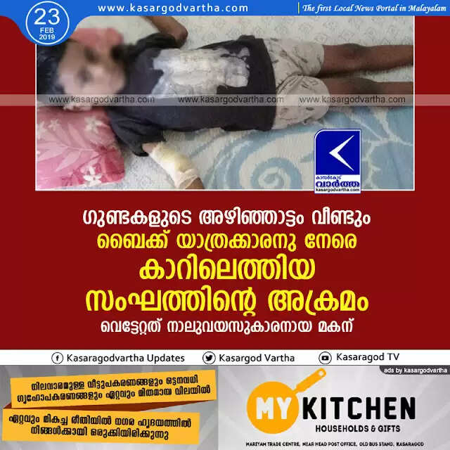 ഗുണ്ടകളുടെ അഴിഞ്ഞാട്ടം വീണ്ടും; ബൈക്ക് യാത്രക്കാരനു നേരെ കാറിലെത്തിയ സംഘത്തിന്റെ അക്രമം, വെട്ടേറ്റത് നാലുവയസുകാരനായ മകന്