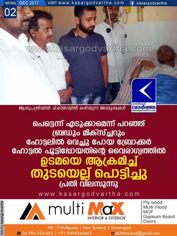 Keywords:  Kasaragod, Kerala, news, Attack, Assault, Crime, Hotel, Accuse, Hotel owner assaulted by broker