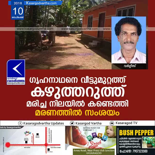 Keywords: Kerala, kasaragod, Death, Crime, Police, news, chittarikkal, Top-Headlines, House owner found dead near home