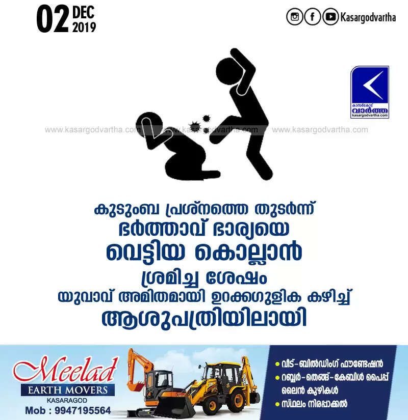 കുടുംബ പ്രശ്നത്തെ തുടര്ന്ന് ഭര്ത്താവ് ഭാര്യയെ വെട്ടി കൊല്ലാന് ശ്രമിച്ച ശേഷം യുവാവ് അമിതമായി ഉറക്കഗുളിക കഴിച്ച് ആശുപത്രിയിലായി