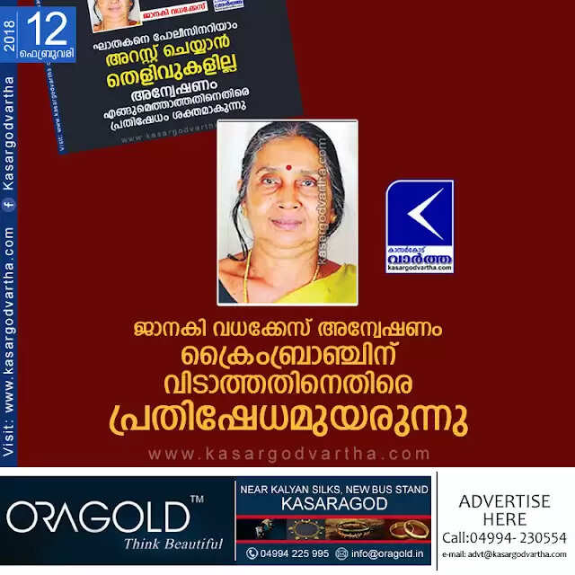 Keywords: Kanhangad, Kasaragod, Kerala, News, Crime, Murder-case, Protest, Police, Action Committee, Natives, Janaki murder case; Native demands crime branch investigation.