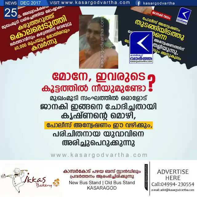 Keywords: Kasaragod, Kerala, news, Death, Murder-case, Murder, Crime, Top-Headlines, Investigation, Police, Janaki murder; Police investigation for a native youth