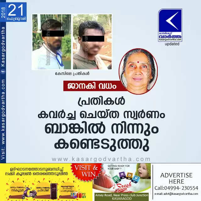 ജാനകി വധം; പ്രതികള് കവര്ച്ച ചെയ്ത സ്വര്ണം ബാങ്കില് നിന്നും കണ്ടെടുത്തു