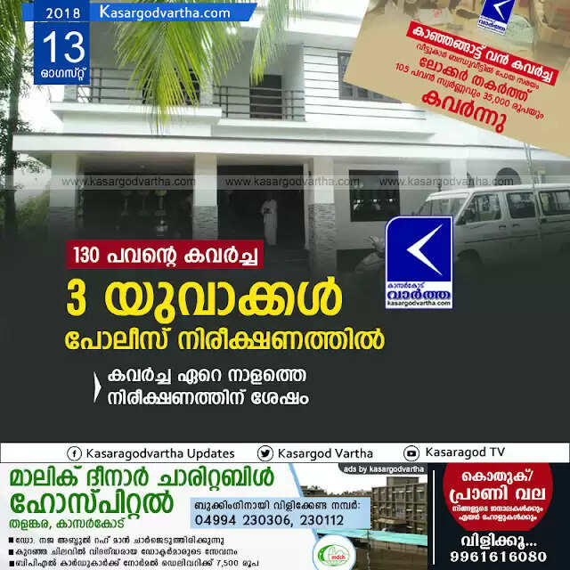 Keywords: Kasaragod, Kerala, news, Kanhangad, Robbery, Top-Headlines, Kanhangad House robbery; 3 under police investigation