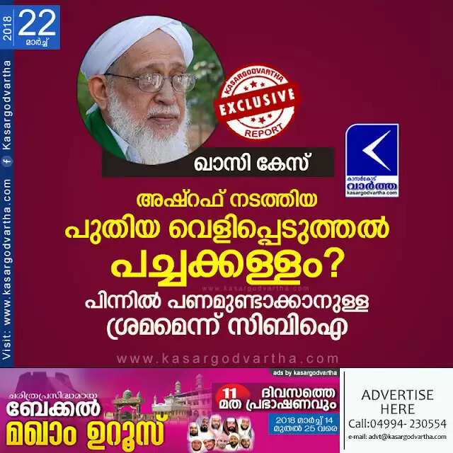 ഖാസി കേസ്; അഷ്റഫ് നടത്തിയ പുതിയ വെളിപ്പെടുത്തല് പച്ചക്കള്ളം? പിന്നില് പണമുണ്ടാക്കാനുള്ള ശ്രമമെന്ന് സിബിഐ