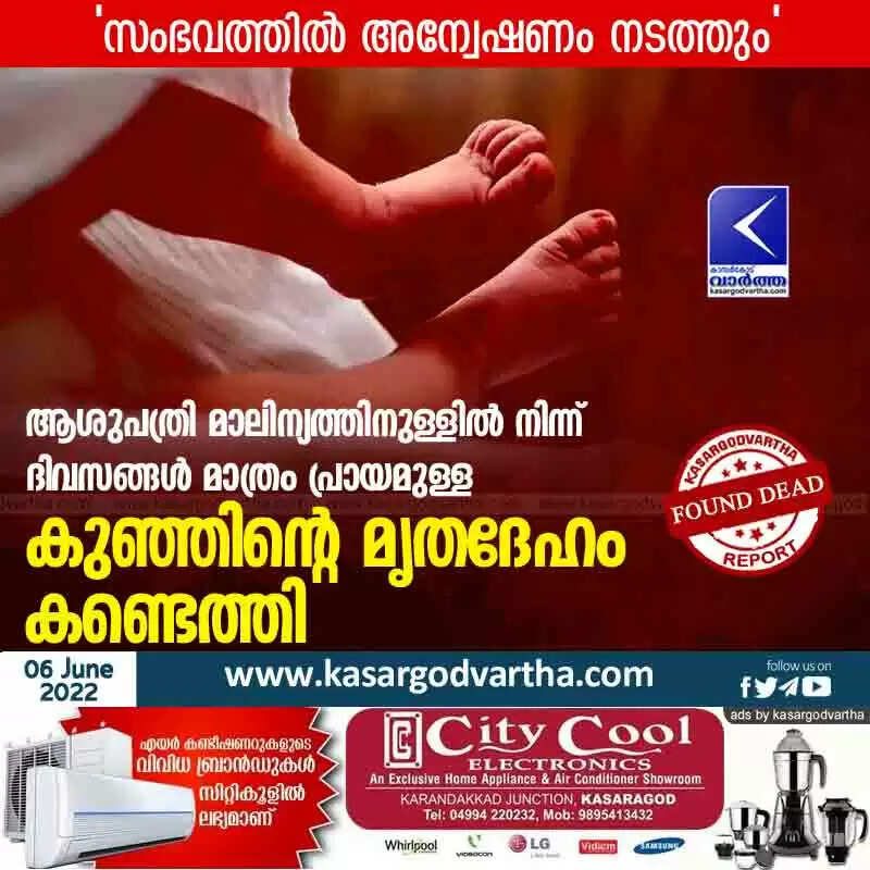 Infant Body Found | ആശുപത്രി മാലിന്യത്തിനുള്ളില് നിന്ന് ദിവസങ്ങള് മാത്രം പ്രായമുള്ള കുഞ്ഞിന്റെ മൃതദേഹം കണ്ടെത്തി