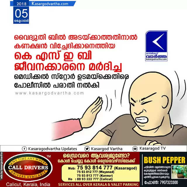 Keywords: Kasaragod, Kerala, news, Bekal, Police, complaint, Crime, Electricity, KSEB Employee assaulted by Medical store owner