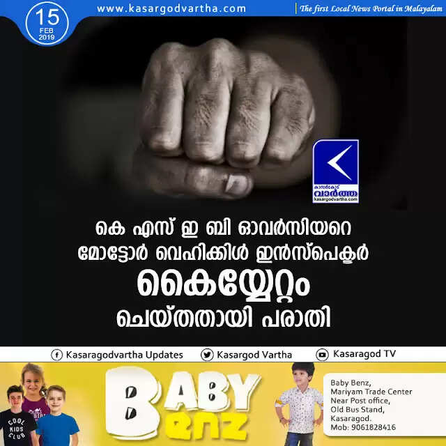 കെ എസ് ഇ ബി ഓവര്‍സിയറെ മോട്ടോര്‍ വെഹിക്കിള്‍ ഇന്‍സ്‌പെക്ടര്‍ കൈയ്യേറ്റം ചെയ്തതായി പരാതി