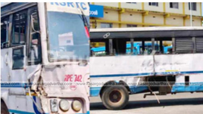 Article Summary: Two KSRTC buses collided inside Alamipally Bus Stand, Kanhangad, injuring 12 passengers.