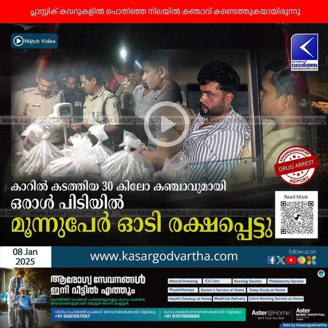 Drug Arrest | കാറിൽ കടത്തിയ 30 കിലോ കഞ്ചാവുമായി ഒരാൾ പിടിയിൽ; മൂന്നുപേർ ഓടി രക്ഷപ്പെട്ടു
