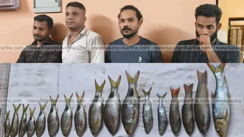 Summary: Four individuals were arrested by the forest department in Panathady for trespassing and catching endangered 'Miss Kerala' fish and other river fish using explosives. They have been remanded in custody. The forest department is taking the incident seriously and will intensify patrols in the area.