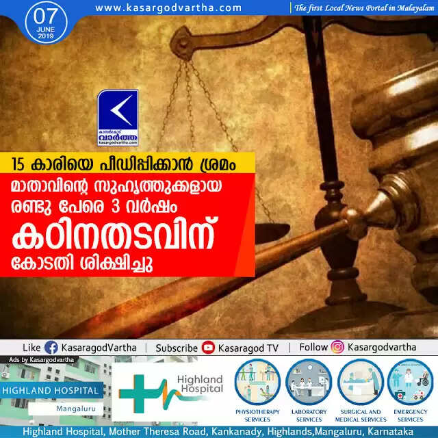 15 കാരിയെ പീഡിപ്പിക്കാന്‍ ശ്രമം; മാതാവിന്റെ സുഹൃത്തുക്കളായ രണ്ടു പേരെ 3 വര്‍ഷം കഠിനതടവിന് കോടതി ശിക്ഷിച്ചു