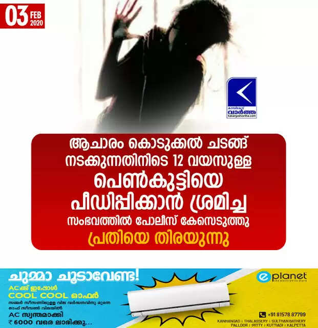 ആചാരം കൊടുക്കല് ചടങ്ങ് നടക്കുന്നതിനിടെ 12 വയസുള്ള പെണ്കുട്ടിയെ പീഡിപ്പിക്കാന് ശ്രമിച്ച സംഭവത്തില് പോലീസ് കേസെടുത്തു; പ്രതിയെ തിരയുന്നു