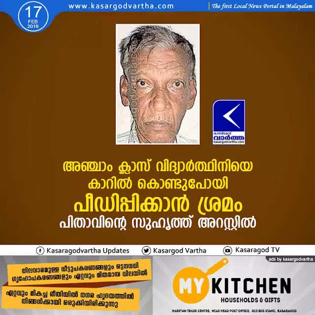 അഞ്ചാം ക്ലാസ് വിദ്യാര്ത്ഥിനിയെ കാറില് കൊണ്ടുപോയി പീഡിപ്പിക്കാന് ശ്രമം; പിതാവിന്റെ സുഹൃത്ത് അറസ്റ്റില്