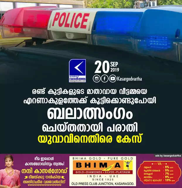 രണ്ട് കുട്ടികളുടെ മാതാവായ വീട്ടമ്മയെ എറണാകുളത്തേക്ക് കൂട്ടിക്കൊണ്ടുപോയി ബലാത്സംഗം ചെയ്തതായി പരാതി; യുവാവിനെതിരെ കേസ്