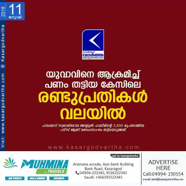 Keywords:  Kasaragod, Kerala, news, Youth, case, Attack, Crime, case, Money looting case; 2 accused in police net