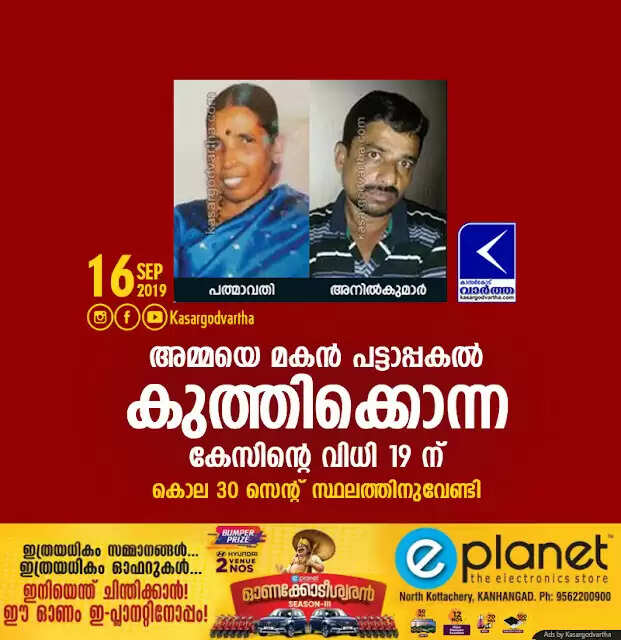 അമ്മയെ മകന് പട്ടാപ്പകല് കുത്തിക്കൊന്ന കേസിന്റെ വിധി 19 ന്; കൊല 30 സെന്റ് സ്ഥലത്തിനുവേണ്ടി