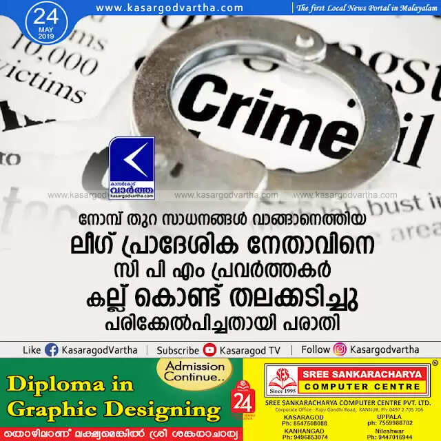 നോമ്പ് തുറ സാധനങ്ങള് വാങ്ങാനെത്തിയ ലീഗ് പ്രാദേശിക നേതാവിനെ സി പി എം പ്രവര്ത്തകര് കല്ല് കൊണ്ട് തലക്കടിച്ചു പരിക്കേല്പിച്ചതായി പരാതി