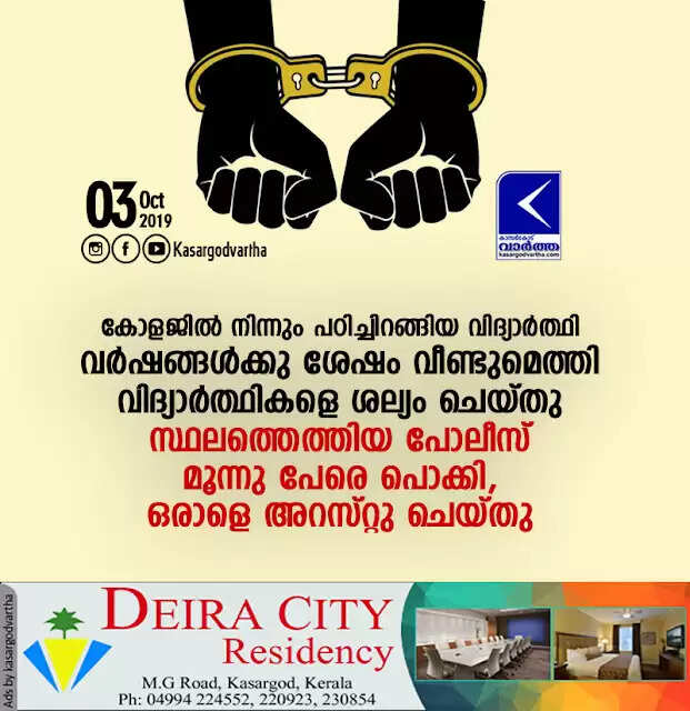 കോളജില് നിന്നും പഠിച്ചിറങ്ങിയ വിദ്യാര്ത്ഥി വര്ഷങ്ങള്ക്കു ശേഷം വീണ്ടുമെത്തി വിദ്യാര്ത്ഥികളെ ശല്യം ചെയ്തു; സ്ഥലത്തെത്തിയ പോലീസ് മൂന്നു പേരെ പൊക്കി, ഒരാളെ അറസ്റ്റു ചെയ്തു