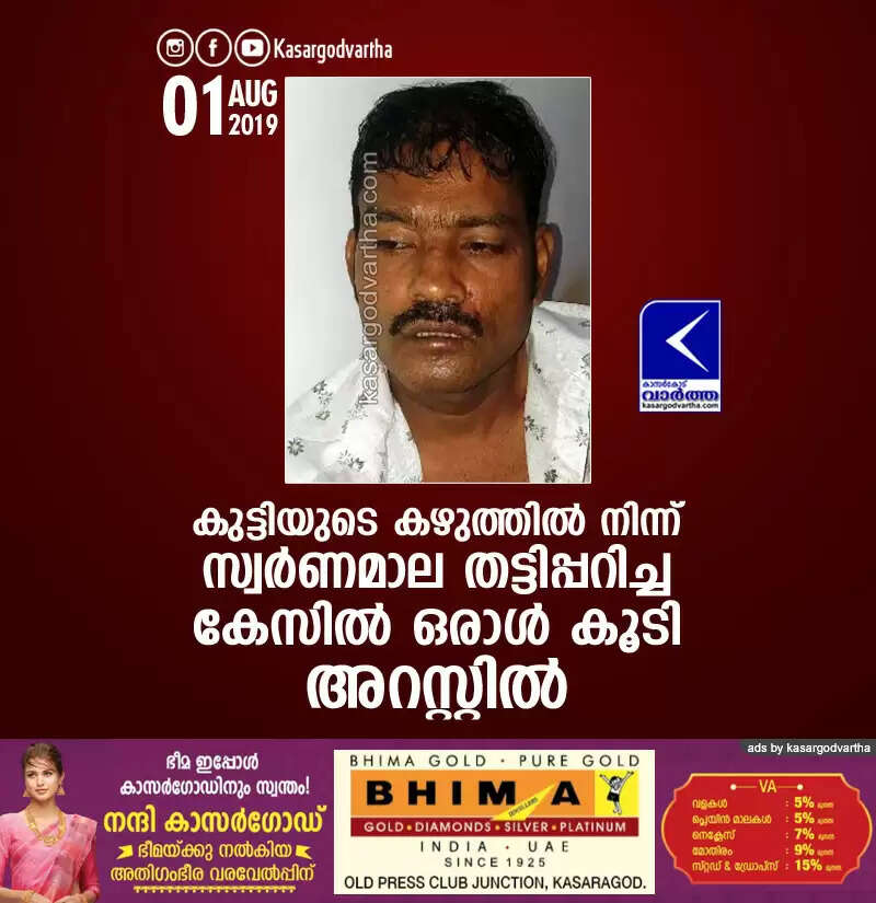 കുട്ടിയുടെ കഴുത്തില്‍ നിന്ന് സ്വര്‍ണമാല തട്ടിപ്പറിച്ച കേസില്‍ ഒരാള്‍ കൂടി അറസ്റ്റില്‍