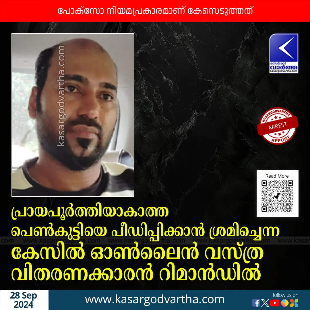 Arrest | പ്രായപൂർത്തിയാകാത്ത പെൺകുട്ടിയെ പീഡിപ്പിക്കാൻ ശ്രമിച്ചെന്ന കേസിൽ ഓൺലൈൻ വസ്ത്ര വിതരണക്കാരൻ റിമാൻഡിൽ