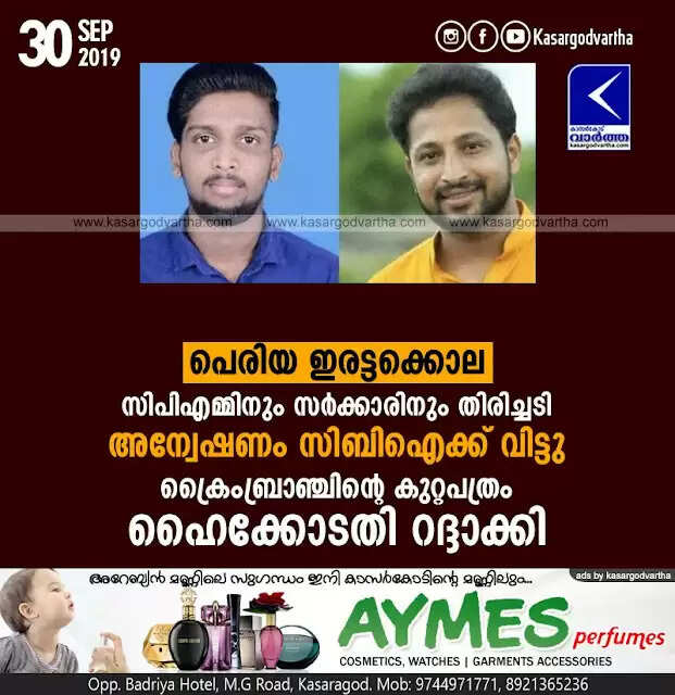 പെരിയ ഇരട്ടക്കൊല: സി പി എമ്മിനും സര്ക്കാരിനും തിരിച്ചടി, അന്വേഷണം സി ബി ഐക്ക് വിട്ട് ഹൈക്കോടതി, ക്രൈംബ്രാഞ്ചിന്റെ കുറ്റപത്രം റദ്ദാക്കി
