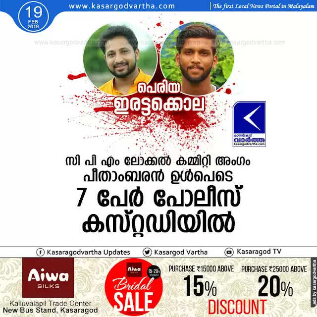 Keywords: Kasaragod, Kerala, news, Top-Headlines, Murder-case, Murder, Crime, Periya, Periya murders; 7 including LC member in police custody