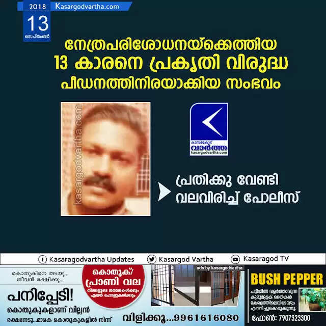 നേത്രപരിശോധനയ്ക്കെത്തിയ 13 കാരനെ പ്രകൃതി വിരുദ്ധ പീഡനത്തിനിരയാക്കിയ സംഭവം; പ്രതിക്കു വേണ്ടി വലവിരിച്ച് പോലീസ്
