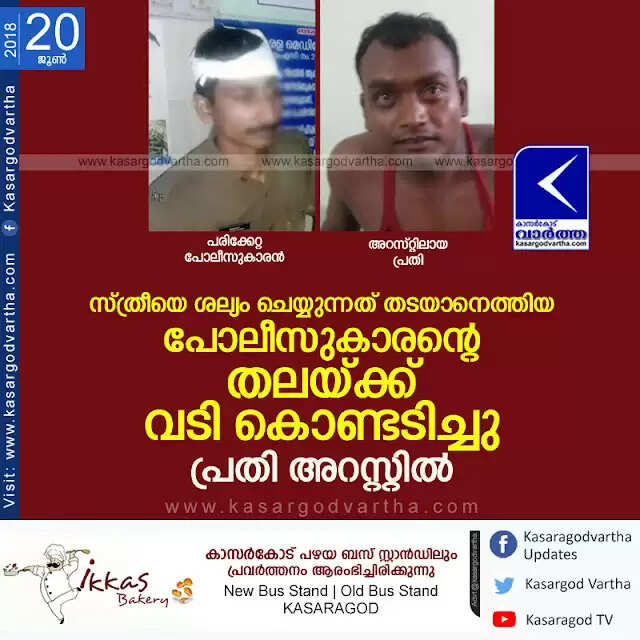 Keywords: Kasaragod, Kerala, news, Accuse, Crime, arrest, Top-Headlines, Police-officer, Attack, Police officer attacked by Youth; Arrested