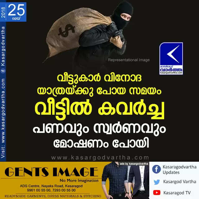 വീട്ടുകാര് വിനോദ യാത്രയ്ക്കു പോയ സമയം വീട്ടില് കവര്ച്ച; പണവും സ്വര്ണവും മോഷണം പോയി