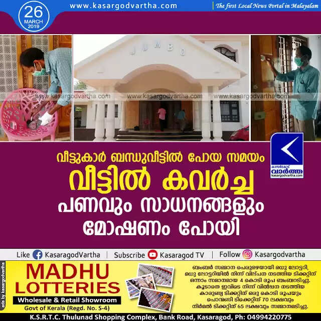 വീട്ടുകാര് ബന്ധുവീട്ടില് പോയ സമയം വീട്ടില് കവര്ച്ച; പണവും സാധനങ്ങളും മോഷണം പോയി