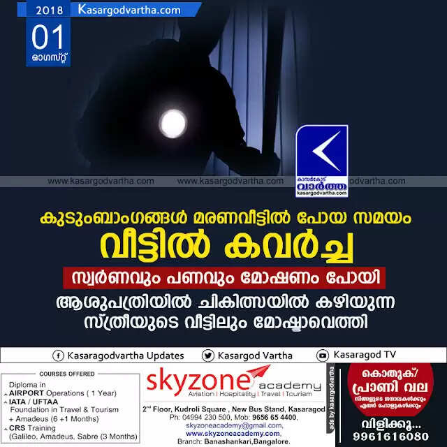 Keywords: Kasaragod, Kerala, news, Robbery, Crime, Top-Headlines, Udinur, Robbery in houses at Udinur