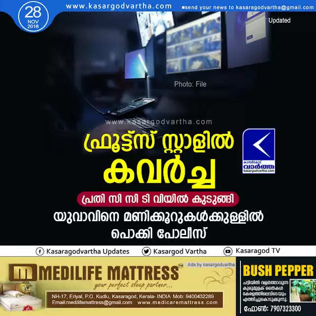 ഫ്രൂട്ട്സ് സ്റ്റാളില് കവര്ച്ച; പ്രതി സി സി ടി വിയില് കുടുങ്ങി, യുവാവിനെ മണിക്കൂറുകള്ക്കുള്ളില് പൊക്കി പോലീസ്