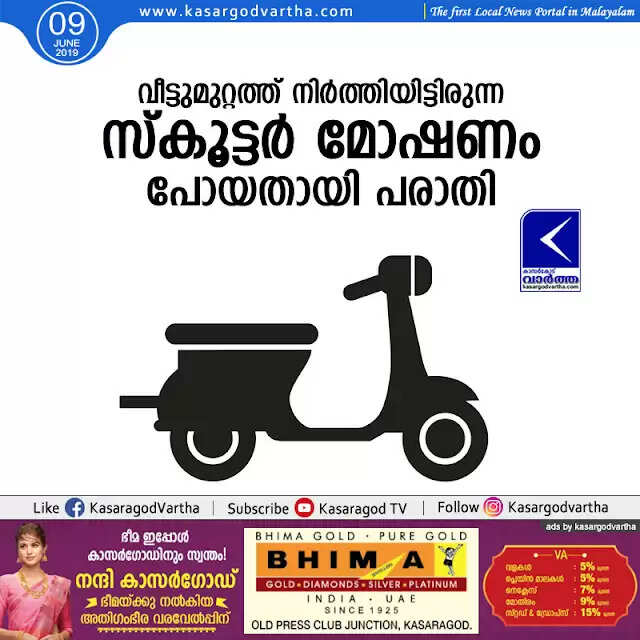 Keywords: Kasaragod, Kerala, news, Scooter, Robbery, Crime, Anangoor, Scooter robbed from House