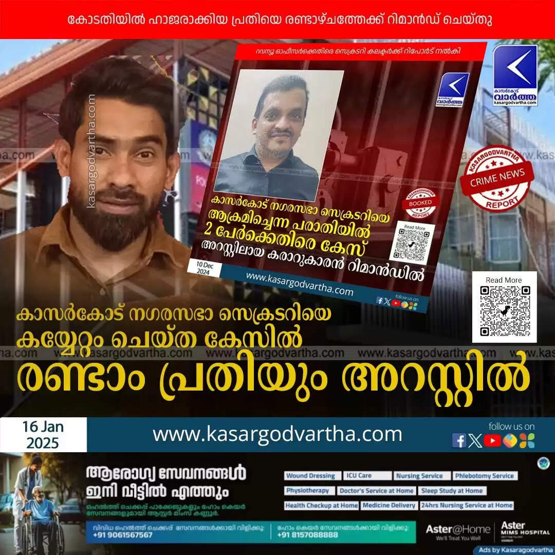 Crime News | കാസര്കോട് നഗരസഭാ സെക്രടറിയെ കയ്യേറ്റം ചെയ്ത കേസില് രണ്ടാം പ്രതിയും അറസ്റ്റില്
