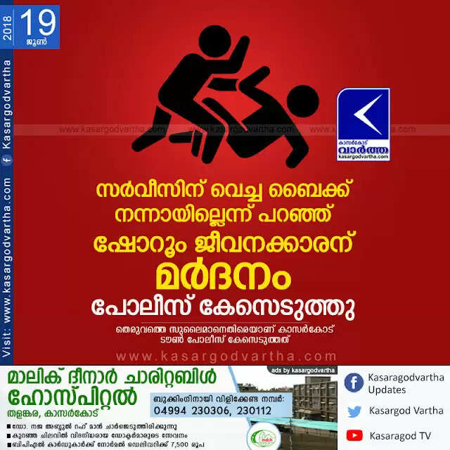 Keywords: Kasaragod, Kerala, news, police-station, case, Assault, Attack, Crime, Show room Employee assaulted; Case registered